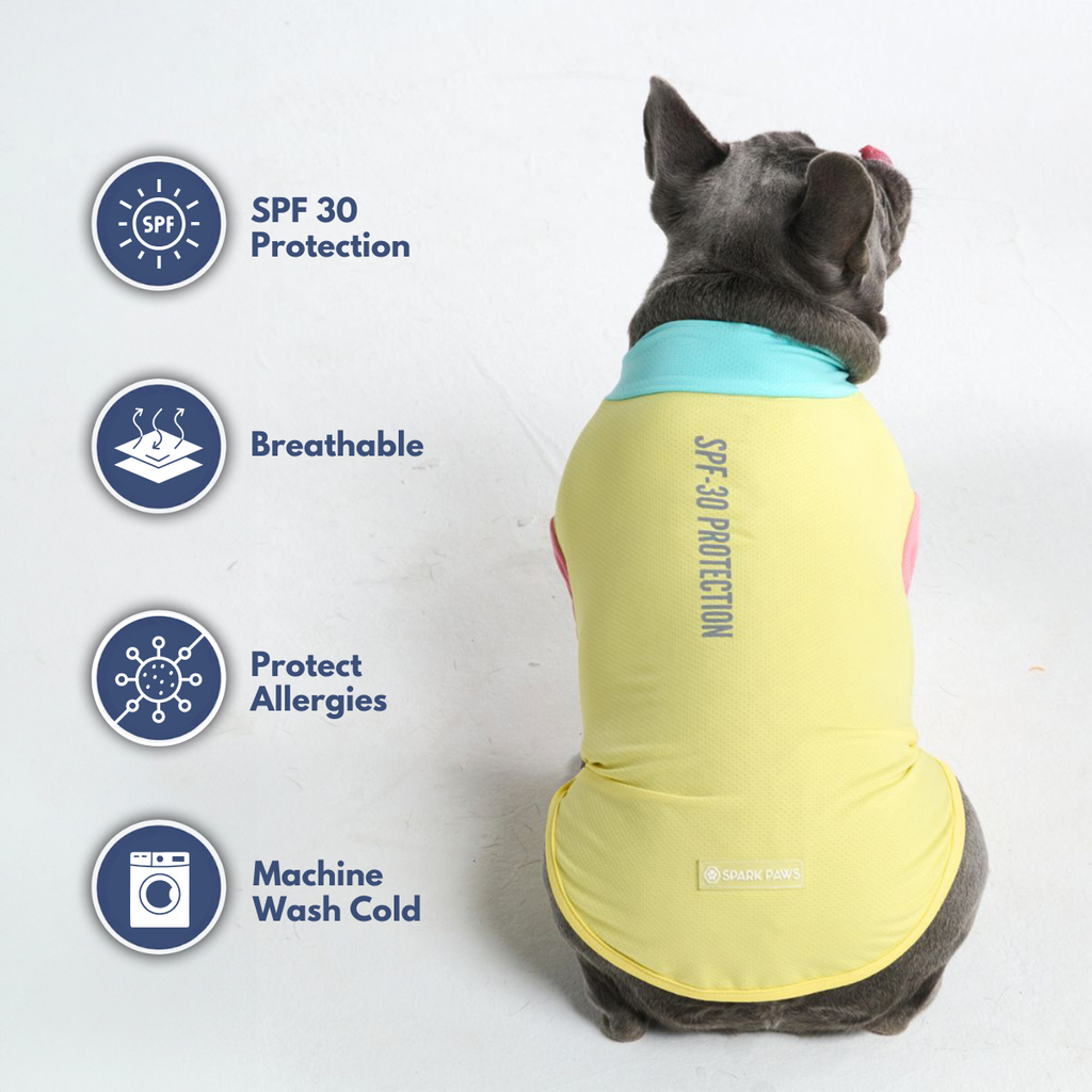 Bescherm je hond tegen de zon met ons SPF-30 Sun-Block Dog Tee Shirt, dat 97% van de schadelijke UVB-stralen blokkeert terwijl je hond schoon en allergeenvrij blijft.