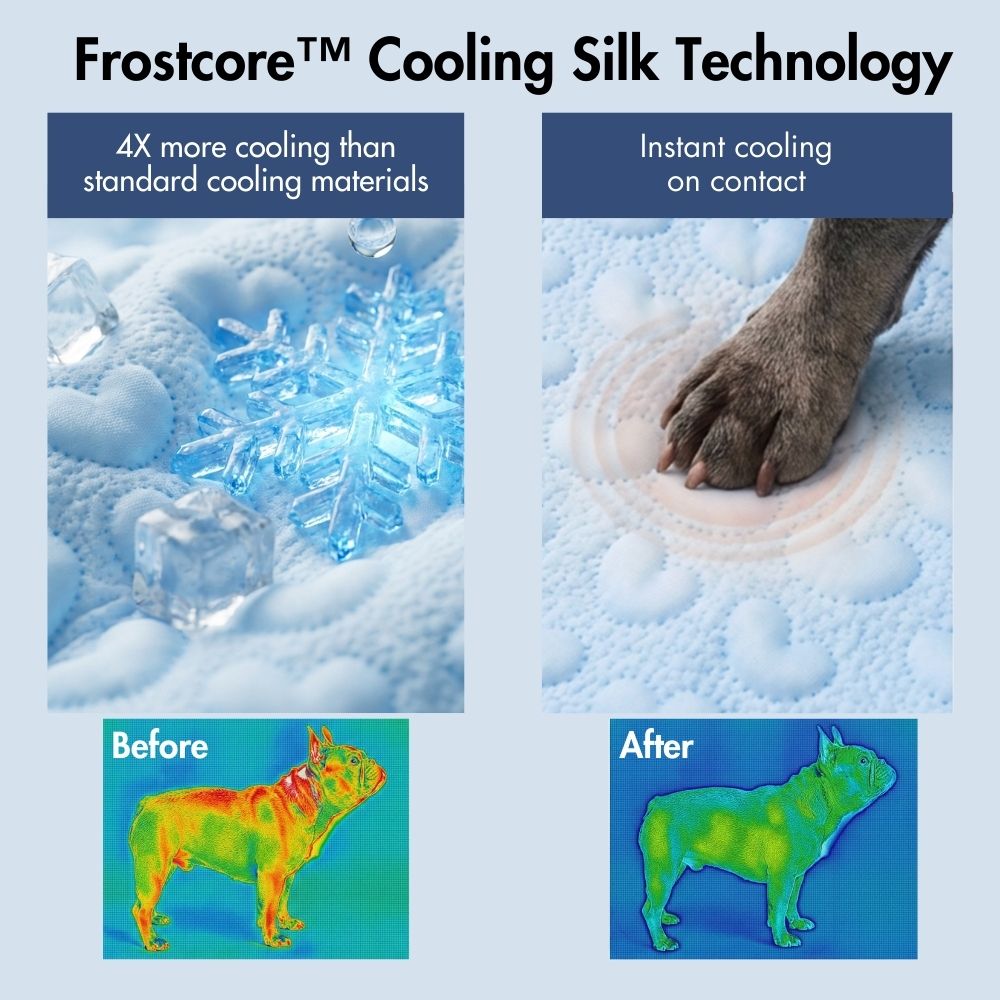 Made with Frostcore™ cooling fabric, the surface pulls heat away on contact to deliver an instant, refreshing cool feel—perfect for hot summer days and overheated pups.
