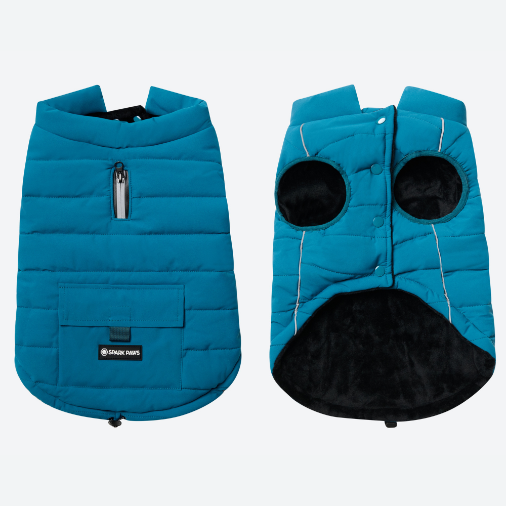 This sleek tech-wear inspired parka will keep your dog dry and warm on the coldest winter days.
