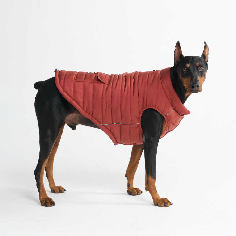 This sleek tech-wear inspired parka will keep your dog dry and warm on the coldest winter days.