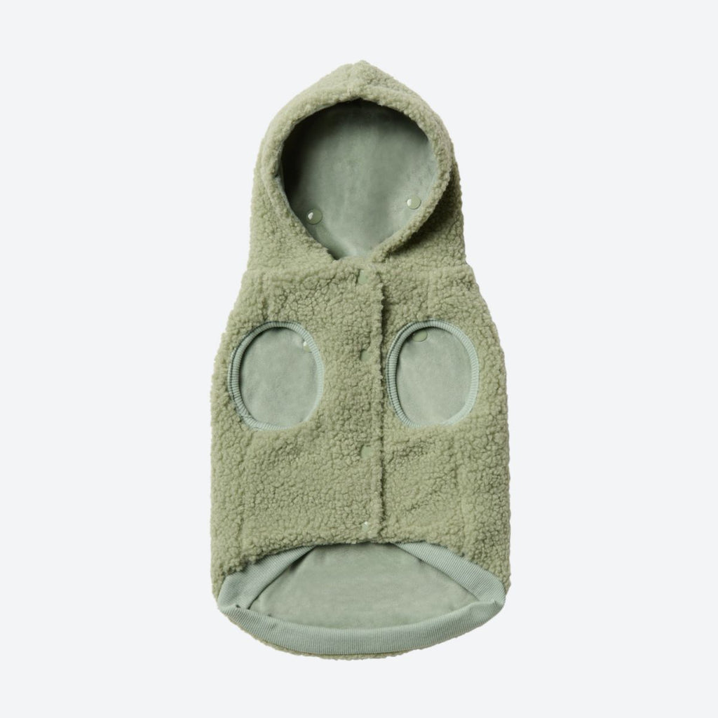 Dois botões na parte de trás do pescoço para estabilizar o capuz amplo